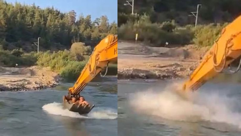 Sıcaktan bunalan işçiler kepçede böyle serinledi
