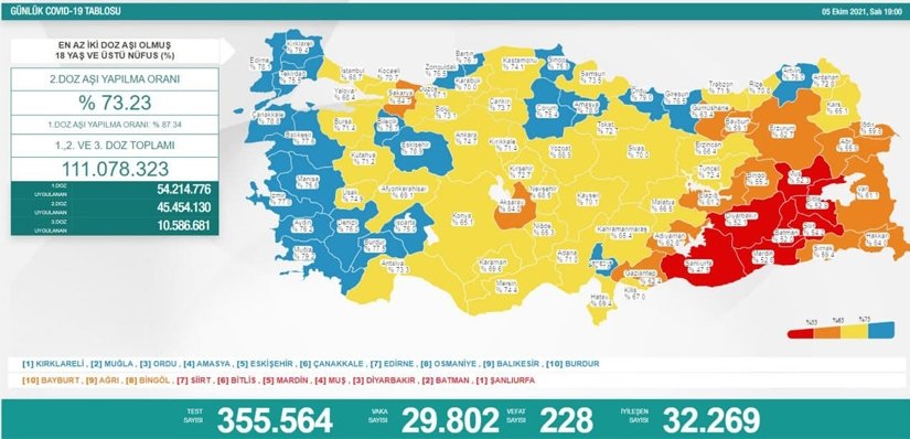 Sağlık Bakanı Fahrettin Koca, 6-12 Kasım tarihli illere göre haftalık vaka haritasını açıkladı. Balıkesir, 100 bin kişide en fazla vaka görülen iller sıralamasında Ordu, Osmaniye ve Karabük'ün ardından 4'üncü oldu.